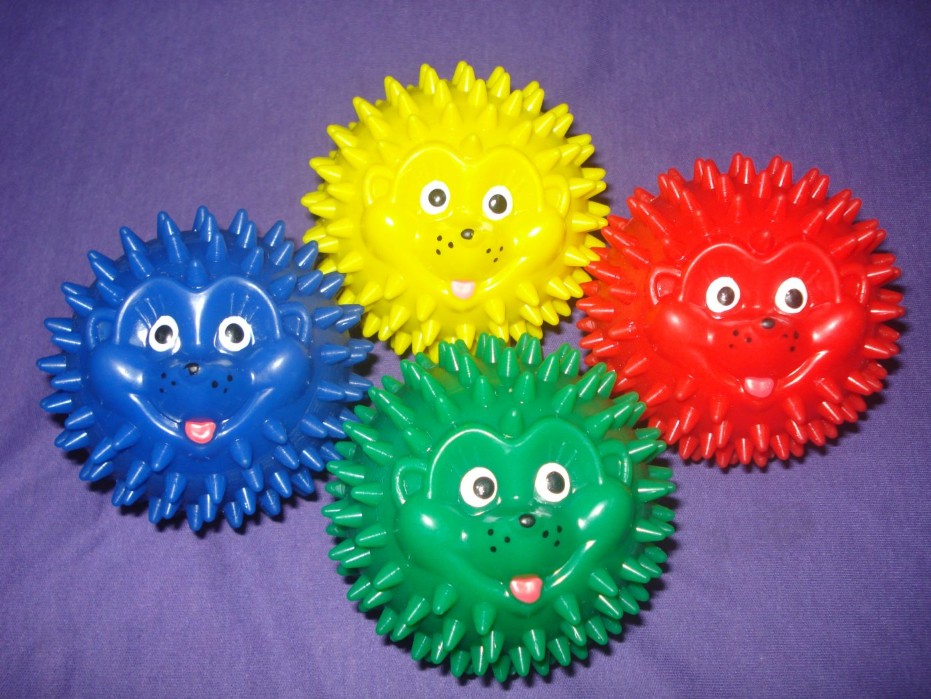 Катая массажный игольчатый мяч в руках, улучшается моторика, что очень полезно для детей.