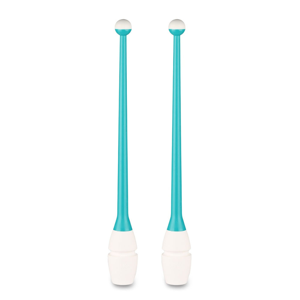 Булавы для худ. гимнастики INDIGO, 41 см, пластик, каучук, в компл. 2шт, бирюз-бел