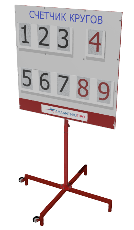 Выполнен и стальных проф труб 40х40х3мм, 40х20х2мм, 20х20х2мм, ДУ 32х3,5мм, ДУ 25х3,5мм, полосы 80х5мм и 40х4мм. Панель из ПВХ 10мм с девятью карманами и карточками (90шт). Счетчик вращается на 360° с возможностью фиксации. Металлоконструкция покрыта полимерной порошковой эмалью. Основание оснащено колёсами для удобства перемещения оборудования по спортплощадке