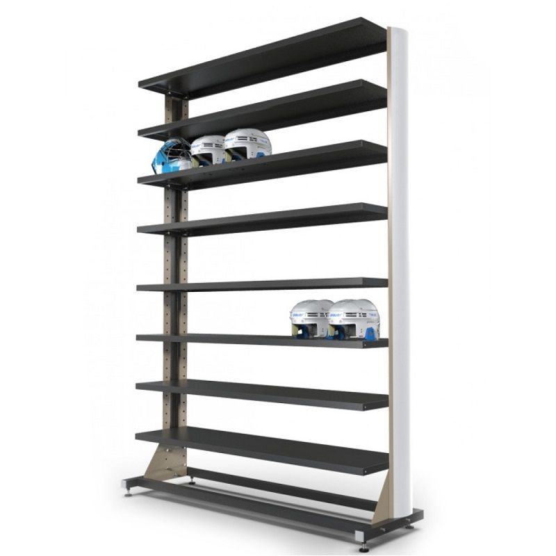 Полки имеют возможность регулировки по высоте с шагом 50 мм. Это позволит Вам оптимально отрегулировать расстояние между полками под любой размер шлемов.