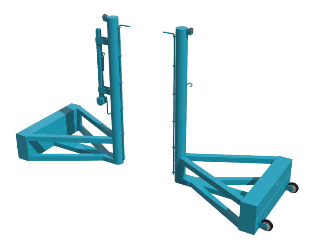 Столбы стоек выполнены из стальной тубы с наружным диаметром 76 мм. стойки оснащены противовесами массой 35кг, а для удобства перемещения имеются колеса.