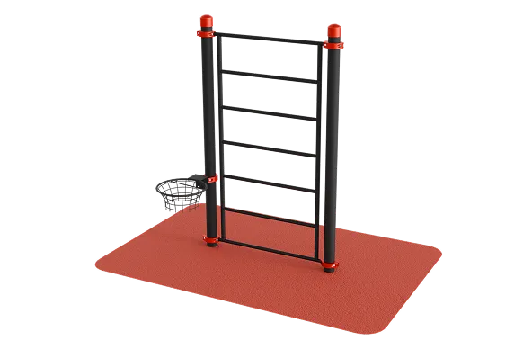 Гимнастический снаряд «Шведская стенка», оснащенный баскетбольным кольцом с сеткой диаметром 18 дюймов (46 см), с дополнительным съемным приспособлением, для выполнения испытания «Бросок теннисного мяча в корзину на полу»