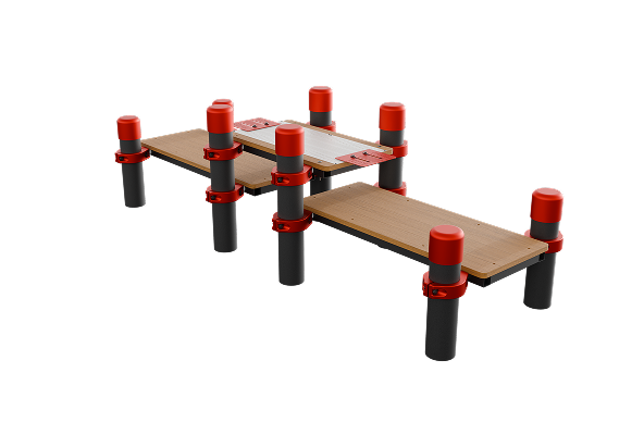 Горизонтальная гимнастическая скамья двойная с вертикальным упором для ног, к которой прикреплены две раздвижные антивандальные измерительные линейки в горизонтальной плоскости с диапазоном измерения от «+35» до «-10» см.