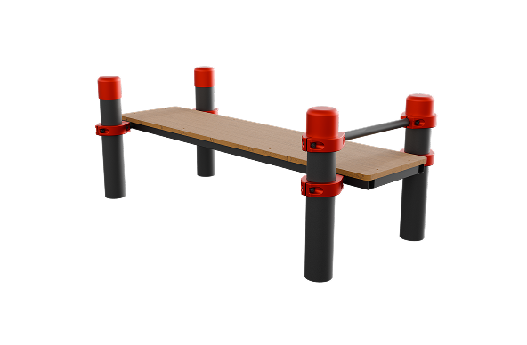 Включает четыре опорные стойки, три перекладины и скамью. Высота стоек: 550 мм (2 шт.), 450 мм (2 шт.). Настил из бруса хвойных пород шириной 450 мм. Соединение — хомутами. Торцы стоек закрыты заглушками.