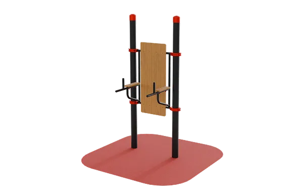Две стойки Ø89 мм, модуль пресс-брусьев на каркасе из трубы Ø33,5 мм.