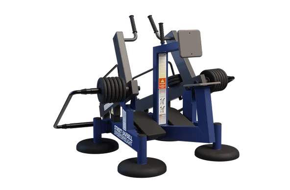 Уличный силовой тренажер для развития мускулатуры спины, бицепса, пресса с изменяемой нагрузкой из положения сидя. MB 7.70 Рычажная тяга (гребная тяга)